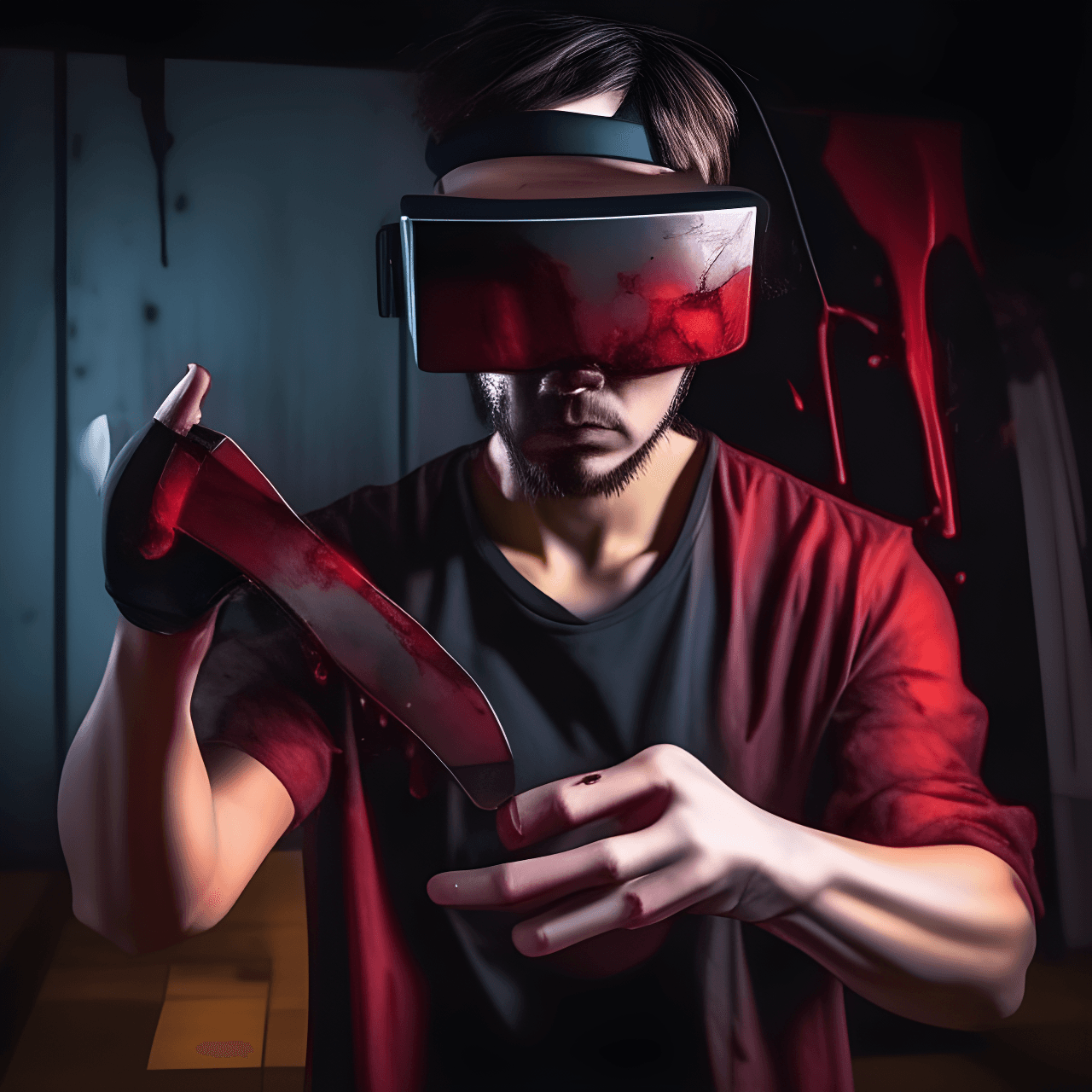 On his third attempt, Toby turned and faced the concerned stranger again, hearing whispers in his head, urging him to act: “Do it,” “Just do it,” “End it.” Without conscious thought, Toby thrust the knife into the man’s chest. After the first blow, an unfamiliar sensation engulfed him. This was unlike any video game he had played before. He felt sick, and his head began to spin. He hastily removed the equipment and rushed to the toilet to vomit. “Are you okay?” his mother called from the stairs. “The… g-g-g-game,” he stammered.